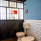Una vecchia carrozzeria convertita in studio d'artista. Dalla bonifica all'isolamento termico e acustico, si è giunti a concepire l'alloggio come un loft industriale, ridando vita ai mattoncini, le travi in legno e in acciaio originari. Non manca l'attenzione al lato green, grazie all'installazione di un pavimento radiante in resina così che riscaldamento, raffrescamento e acqua calda possono essere gestiti autonomamente tramite energia solare. La scala, realizzata su misura artigianalmente, porta alla zona notte/relax. La porta di ingresso della carrozzeria è stata recuperata e riadattata come parete di ingresso del bagno.